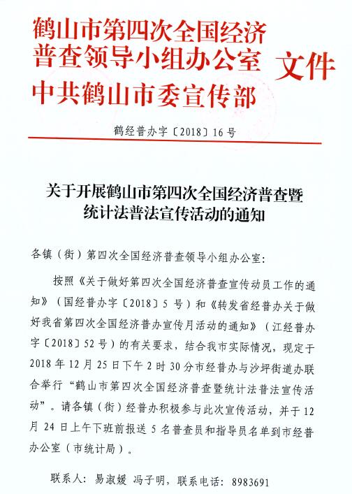 關(guān)于開展鶴山市第四次全國經(jīng)濟(jì)普查暨統(tǒng)計(jì)法普法宣傳活動(dòng)的通知