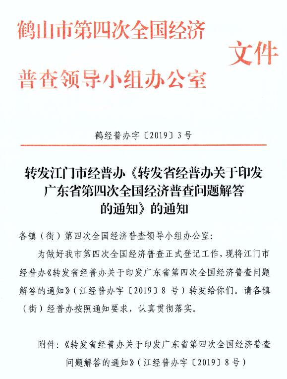 轉(zhuǎn)發(fā)江門市經(jīng)普辦《轉(zhuǎn)發(fā)省經(jīng)普辦關(guān)于印發(fā)廣東省第四次全國經(jīng)濟(jì)普查問題解答的通知》的通知