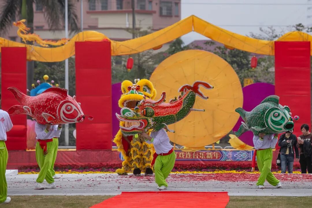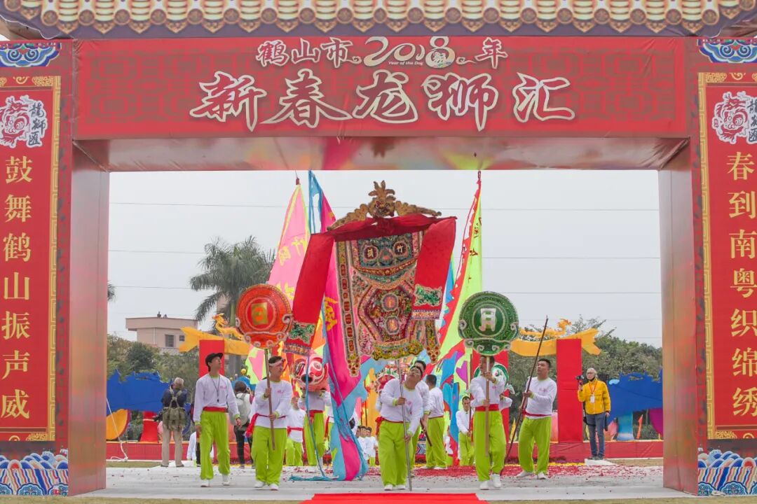 ▲2018年2月17日上午,在鶴山市首屆“龍獅匯”大型民俗賀新春活動中進(jìn)行金龍展演