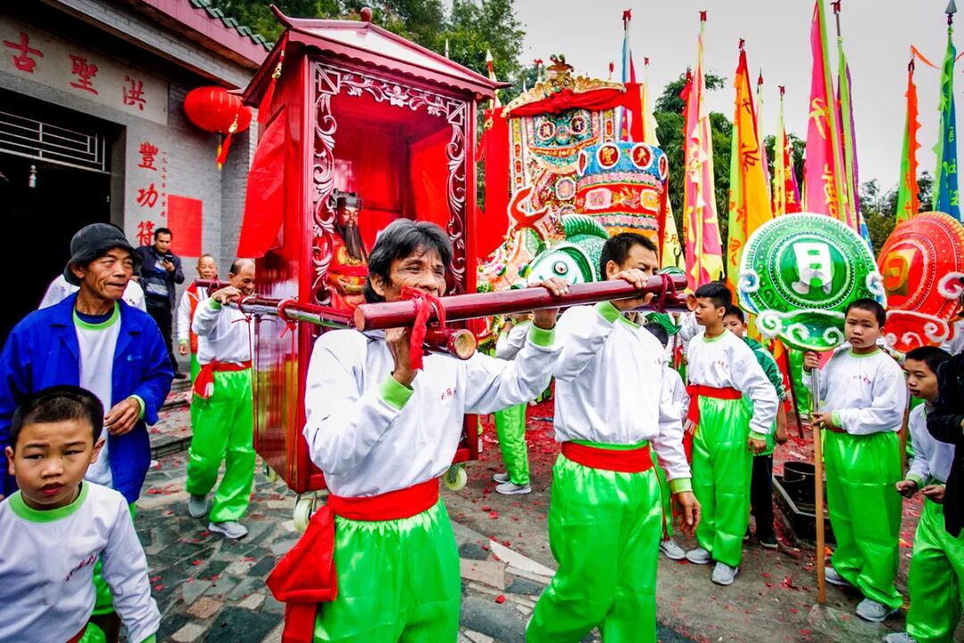 每次表演前,會先到洪圣廟接出“洪圣大王菩薩”,在菩薩的帶領(lǐng)下,由鯉魚、鰲魚、金龍、獅子等組成的巡游隊(duì)伍會穿過接龍門,在各村巡游。每條村在舞龍時(shí)都設(shè)有門樓,龍要側(cè)身而過,村人在金龍經(jīng)過時(shí)給龍灌酒,必須一飲而盡。