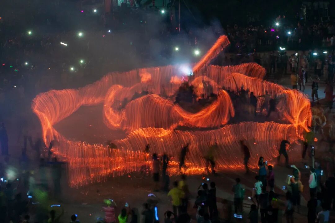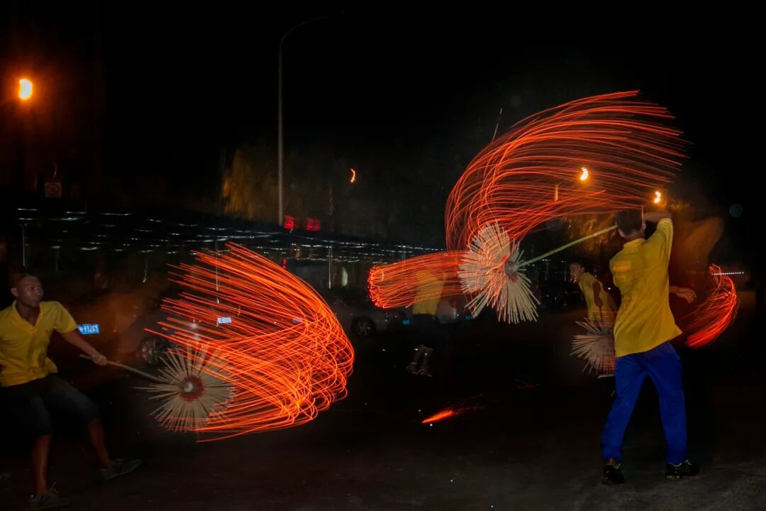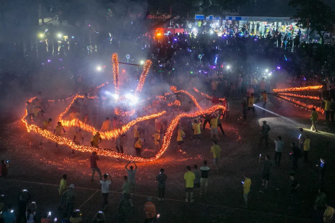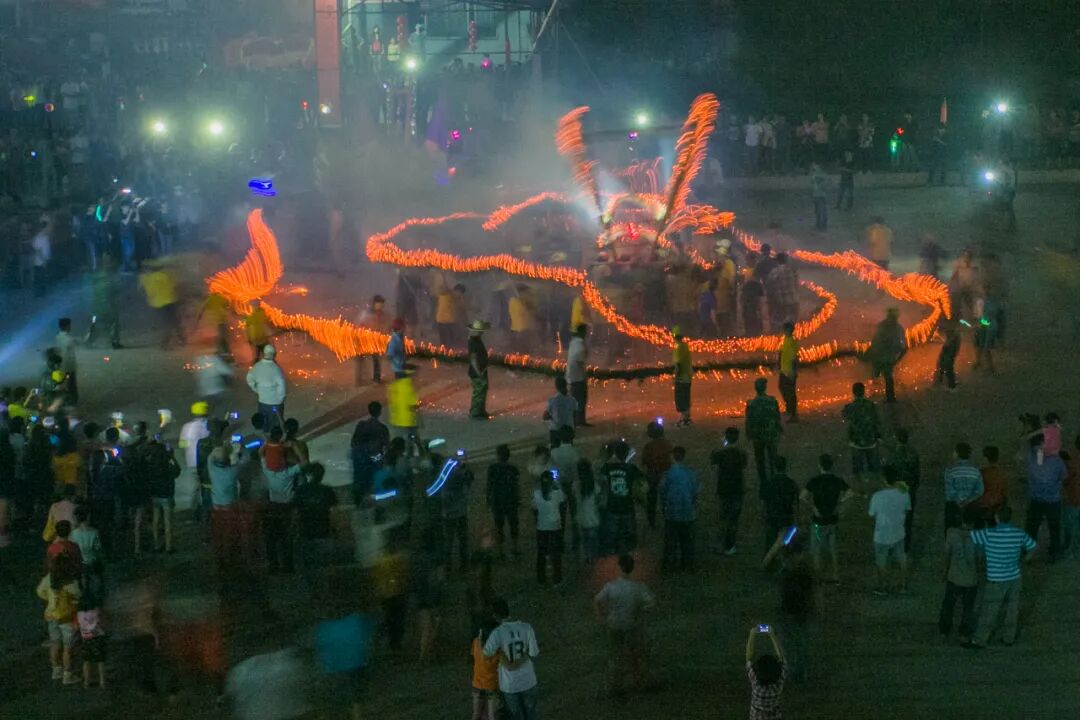 每逢農(nóng)歷八月二十八,二十九兩天,是黃洞的火龍節(jié),村里以及外出的鄉(xiāng)親都會回來。當晚,觀者如涌,氣氛熱鬧。黃洞火龍龍頭高2米多,龍身130多米長,龍光由村民點燃插在龍身的香火噴射出來并舞動起來,流光溢彩,龍光四射,氣勢非凡,震撼人心。既是“舞龍”,更是“龍舞”。火龍從村里的聚龍里出發(fā),出公路,入江夏山莊,繞村道,環(huán)后山,再到廣場進行盤龍,整個過程熱鬧非凡,場面蔚為壯觀。當?shù)卮迕裾f,每年農(nóng)歷八月二十八和二十九舞火龍,意在祈求風調(diào)雨順、五谷豐登、村民幸福安康。這個傳統(tǒng)節(jié)日在黃洞村超過200多年歷史。
