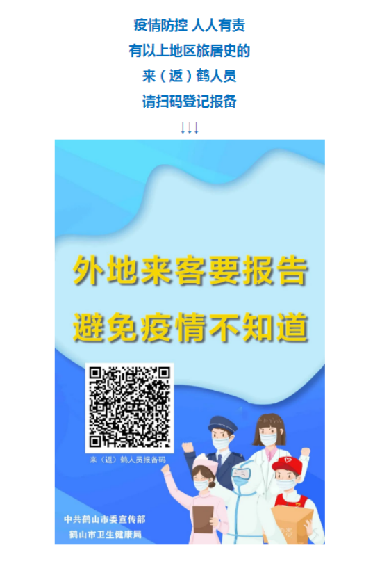 因疫情防控需要,請在排查時間內(nèi)有以下地區(qū)旅居史的來(返)鶴人員迅速向所在鎮(zhèn)(街)報備,登記離開所在地區(qū)的時間和現(xiàn)住址,不參加聚集性活動,不前往密閉公共場所,按照村(居)三人小組要求落實健康管理措施。