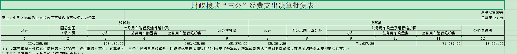 2024年度中國人民政治協(xié)商會(huì)議廣東省鶴山市委員會(huì)辦公室財(cái)政撥款“三公”經(jīng)費(fèi)支出決算表