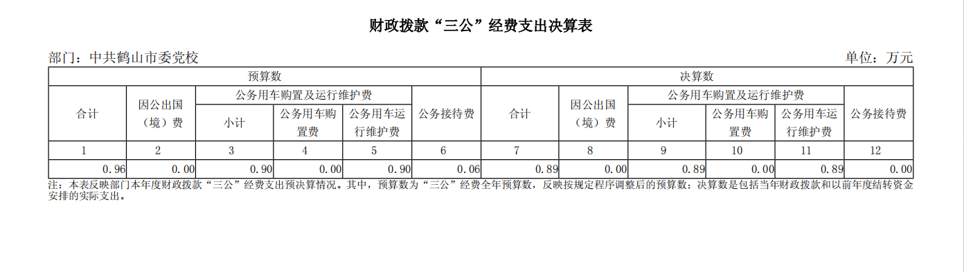 2024年中共鶴山市委黨校財政撥款“三公”經(jīng)費支出決算表