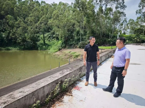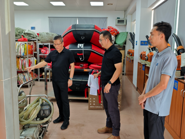 ▲鎮(zhèn)應(yīng)急辦聯(lián)合河長辦到山塘水庫,查看水庫水位情況和應(yīng)急救援器材
