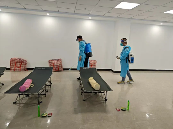 ▲組織鎮(zhèn)消殺隊對全鎮(zhèn)避難場所開展滅蚊工作