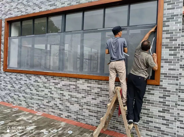 ▲組織工作人員對鎮(zhèn)避難場所加裝紗網(wǎng)