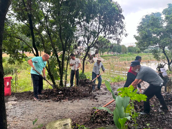黨員群眾手持鐵鍬、掃帚、鐵夾等工具分工協(xié)作,或深入綠化帶清理枯枝落葉、塑料袋等雜物以減少衛(wèi)生死角,從源頭切斷蚊蟲滋生環(huán)境;或?qū)ο锏澜锹?、公共活動區(qū)域的堆積雜物進(jìn)行集中清運,避免雜物堵塞排水通道、滋生蚊蟲;或沿村內(nèi)溝渠逐段排查,發(fā)現(xiàn)淤積淤泥便合力鏟除、用推車清運。不少群眾主動推來小推車參與垃圾轉(zhuǎn)運,還有人對首輪清理區(qū)域開展“回頭看”復(fù)核,在緊密配合中全力清除積水隱患、改善村容村貌。