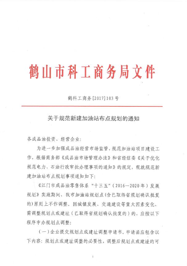 關(guān)于規(guī)范新建加油站布點(diǎn)規(guī)劃的通知