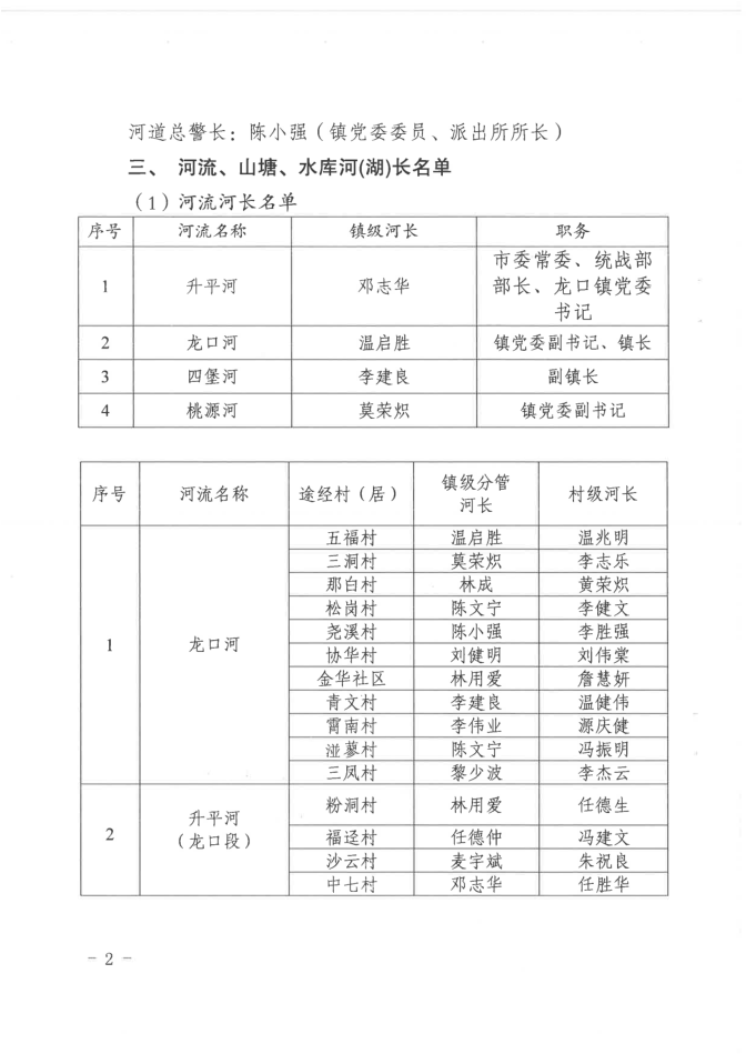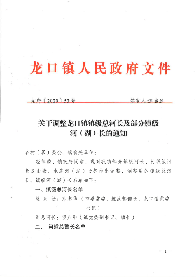 關(guān)于調(diào)整龍口鎮(zhèn)鎮(zhèn)級(jí)總河長(zhǎng)及部分鎮(zhèn)級(jí)河(湖)長(zhǎng)的通知