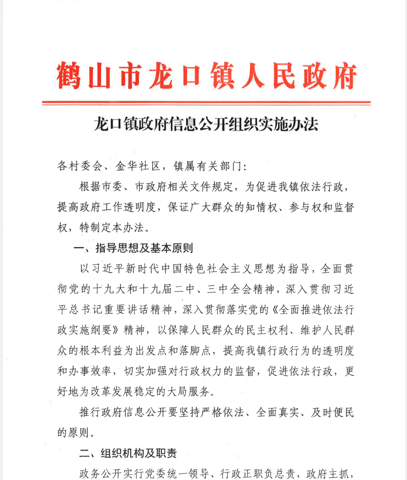 2018年,我鎮(zhèn)認(rèn)真貫徹國家和省、市關(guān)于政務(wù)公開和政府信息公開的有關(guān)要求,重新修訂《龍口鎮(zhèn)政府信息公開組織實施辦法》堅持依法行政,深化信息公開,不斷增強工作透明度,保障了人民群眾的知情權(quán)、參與權(quán)和監(jiān)督權(quán)。