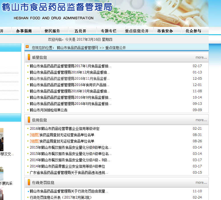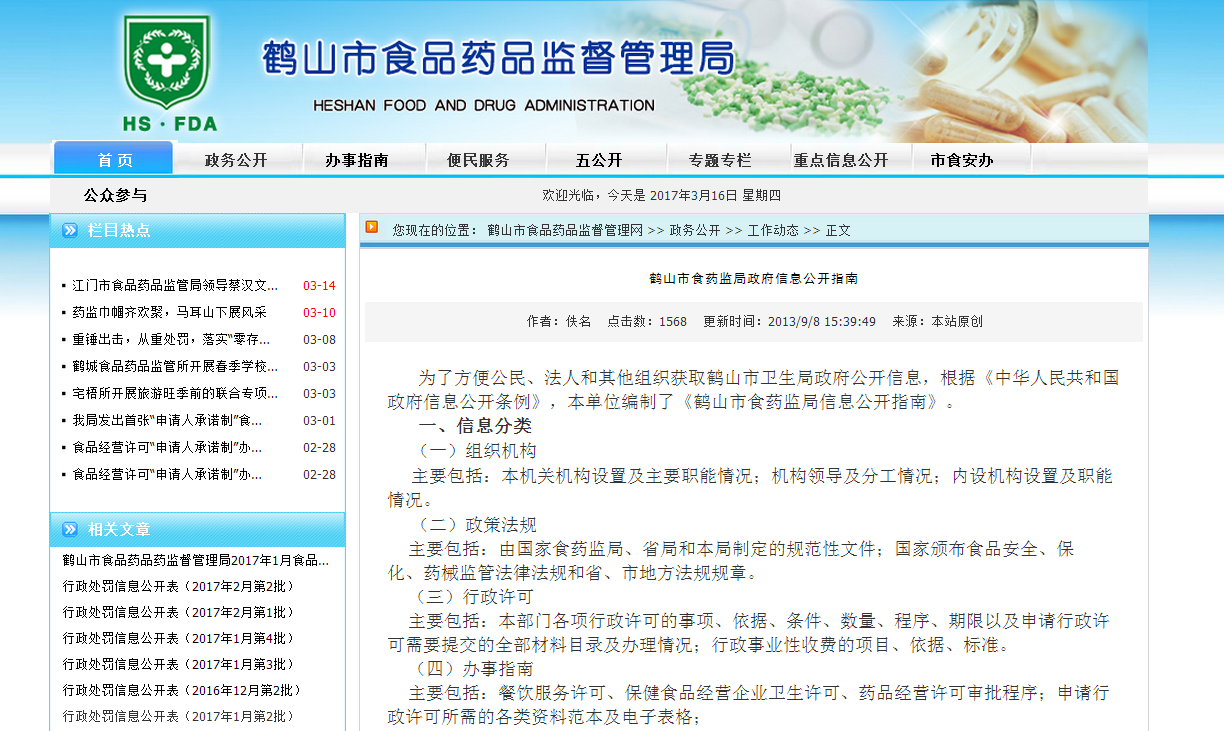 鶴山市食品藥品監(jiān)督管理局2016年政府信息公開工作年度報告