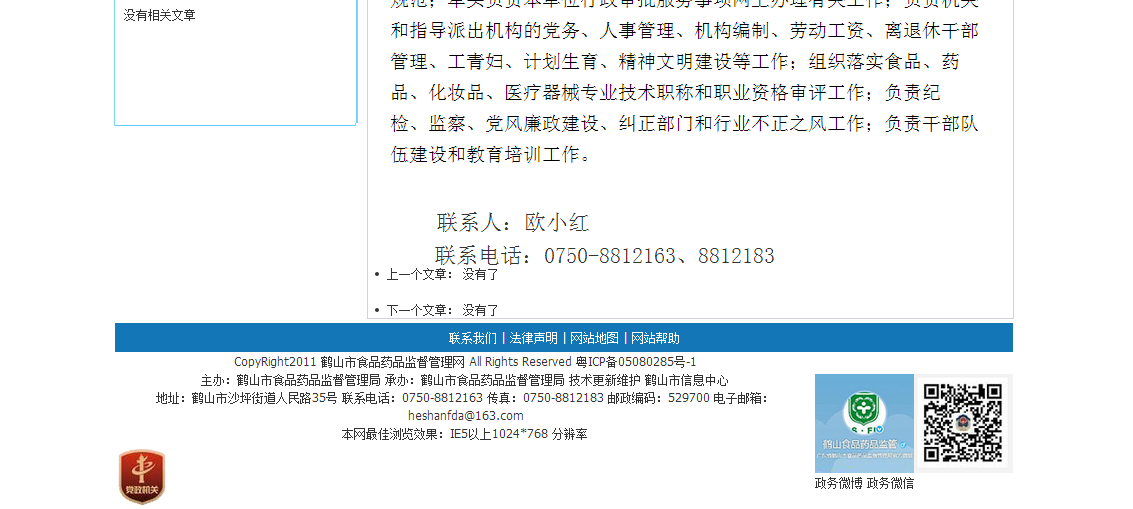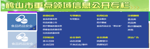 圖4:鶴山市食品藥品監(jiān)管局門戶網站政府信息公開指南