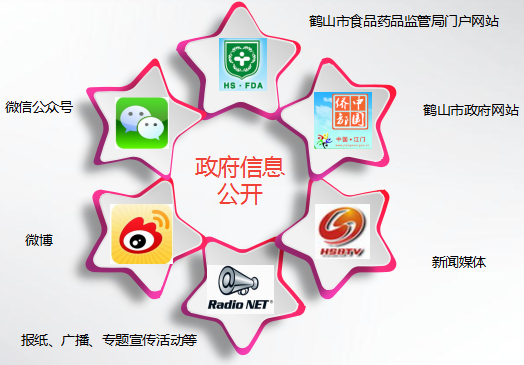 我局加強政府信息公開載體建設,積極推進電子政務,目前,主要通過鶴山市食品藥品監(jiān)督管理局門戶網站、鶴山市政府信息公開平臺、微信、微博、新聞通報會以及報紙、廣播、電視、專題宣傳活動等方式主動及時公開發(fā)布政策法規(guī)、政務動態(tài)、辦事指南、安全知識等信息。