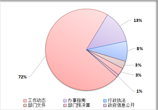 (一)網站發(fā)布信息基本情況。我局在鶴山市食品藥品監(jiān)督管理局門戶網站和鶴山市政府信息公開平臺主動公開信息150條,其中,工作動態(tài)108條(占比72%),辦事指南20條(占比13%),行政執(zhí)法12條(占比8%),部門文件4條(占比2.7%),部門預決算4條(占比2.7%),政府信息公開2條(占比1.3%)。