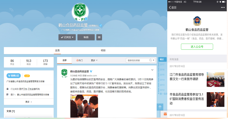 (二)微信、微博、新聞媒介發(fā)布信息情況。2016年,我局微信公眾號關注用戶344人,新浪微博關注用戶913人;在微信“鶴山食品藥品監(jiān)管”推送信息共121條,在微博“鶴山食品藥品監(jiān)管”發(fā)布信息101條,在報刊、鶴山新聞等合計發(fā)布信息4條。