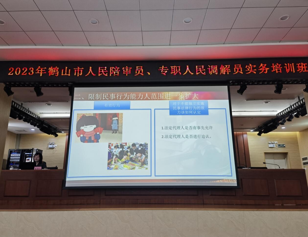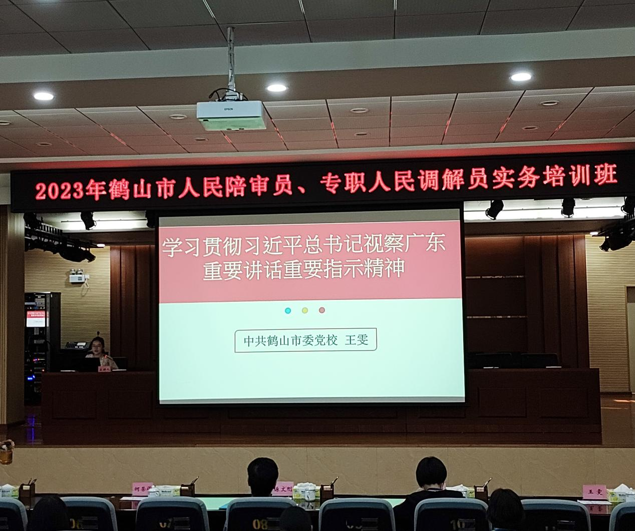 2023年7月25日,鶴山市人民法院、鶴山市司法局舉行2023年人民陪審員、專職人民調解員贈書活動暨實務培訓班。市人民法院黨組成員、政治部主任何榮俊同志,市司法局黨組成員、副局長源文剛同志,鶴山市人民陪審員、專職人民調解員、行政復議輔助人員、社區(qū)矯正專職工作者共計100余人參加本次培訓。