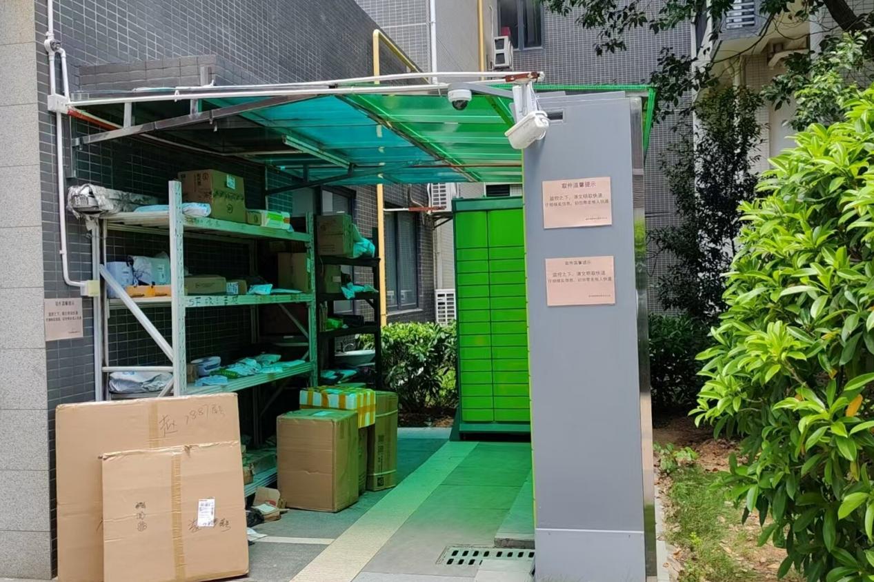 ▲星海嘉園小區(qū)成功安裝帶雨棚的快遞架