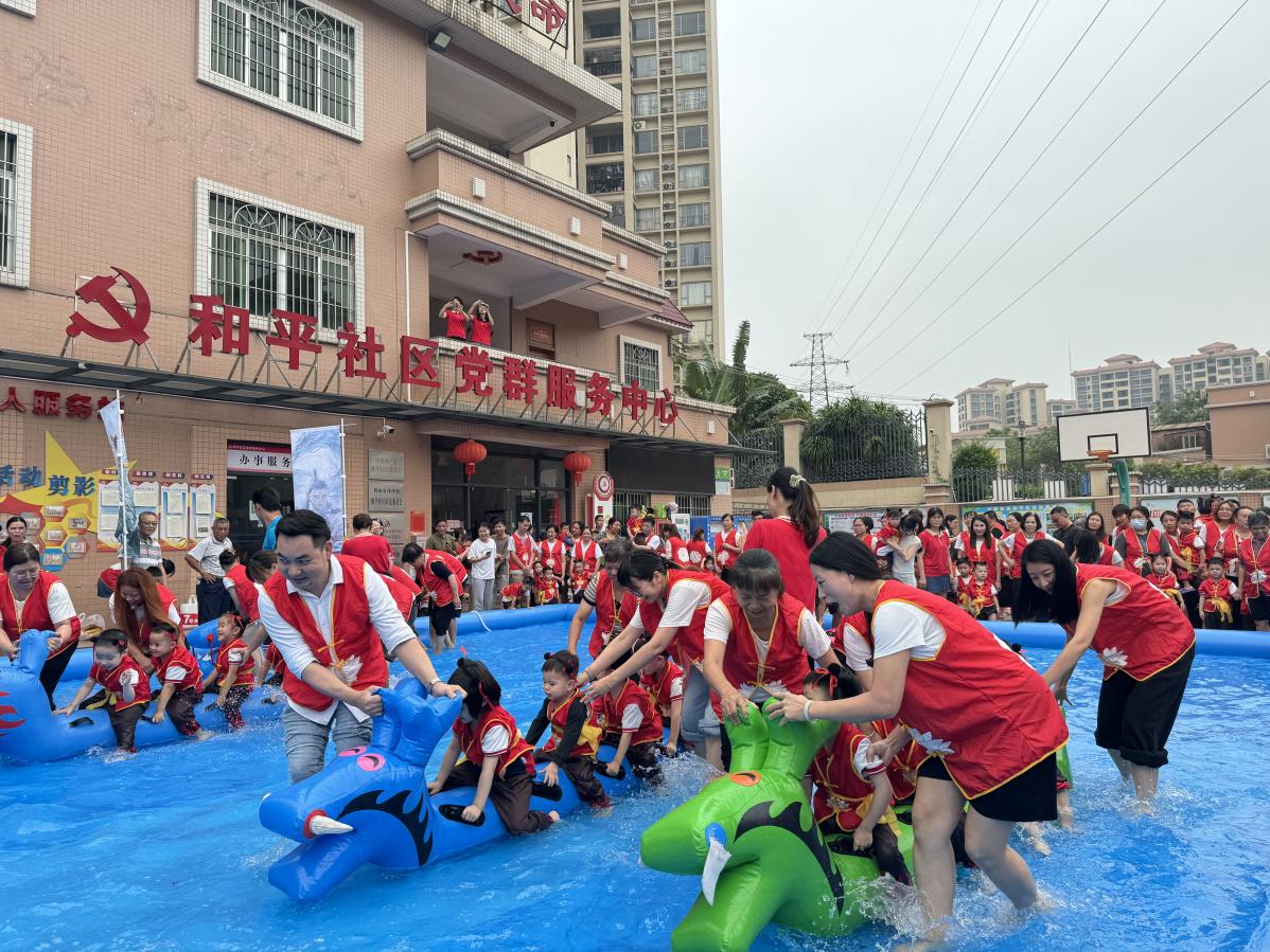 ▲和平社區(qū)組織轄區(qū)親子家庭挑戰(zhàn)水上游戲