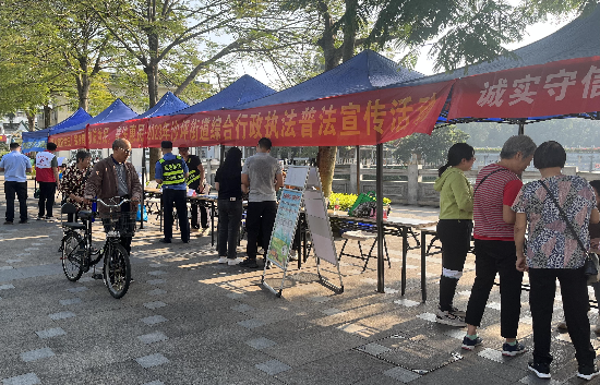 同時(shí),執(zhí)法人員以轄區(qū)真實(shí)執(zhí)法案件為例,在活動現(xiàn)場“以案說法”,讓社區(qū)居民對行政執(zhí)法工作和相關(guān)法律法規(guī)有更加直觀深入的認(rèn)知,提升居民群眾尊法、學(xué)法、守法、懂法、用法的意識。此外,活動還邀請了律師顧問來到現(xiàn)場為居民群眾面對面解答涉法疑問。本次活動共發(fā)放宣傳材料1000余份,接待咨詢?nèi)罕?/span>200余人次。