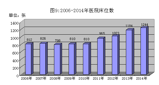 全市有醫(yī)院、衛(wèi)生院15間;衛(wèi)生機構(gòu)床位1244張,其中等級醫(yī)院床位1144張;衛(wèi)生機構(gòu)人員數(shù)2555人,衛(wèi)生技術(shù)人員有1805人,其中:執(zhí)業(yè)醫(yī)師616人,執(zhí)業(yè)助理醫(yī)師106人,注冊護士768人,藥劑人員202人,檢驗人員113人。全市衛(wèi)生站127個,衛(wèi)生站總?cè)藬?shù)196人。