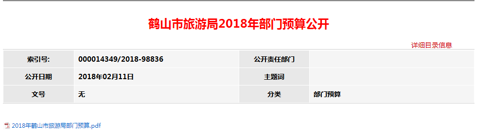 (五)繼續(xù)推進財政資金信息公開。根據(jù)市政府和市財政局的統(tǒng)一規(guī)定,我局于2018年2月、10月公開了《鶴山市旅游局2018年部門預算公開》和《2017年鶴山市旅游局部門決算公開報告》,并接受市民監(jiān)督。