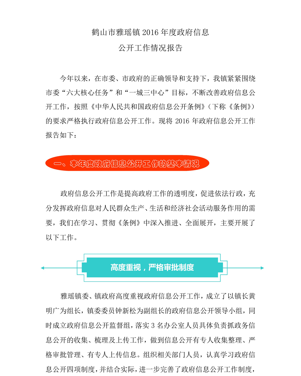 鶴山市雅瑤鎮(zhèn)2016年度政府信息公開工作情況報(bào)告