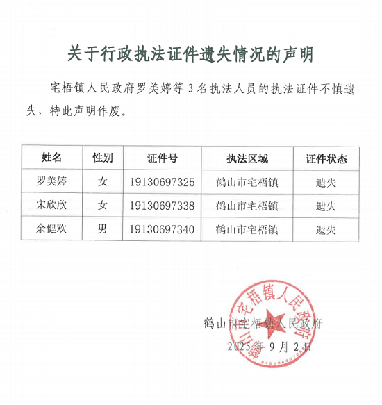關(guān)于行政執(zhí)法證件遺失情況的聲明