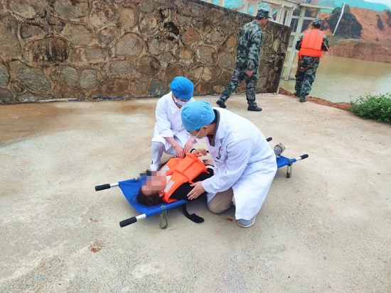 到達(dá)現(xiàn)場后,指揮官帶領(lǐng)救援人員對現(xiàn)場河流開展調(diào)查,經(jīng)調(diào)查及結(jié)合現(xiàn)場實(shí)際情況,因受強(qiáng)降雨的影響,水位暴漲,繼而出現(xiàn)泥石流、山體滑坡、洪水災(zāi)害等險(xiǎn)情,受困群眾無法從陸路撤出,應(yīng)急搶險(xiǎn)組立即調(diào)用沖鋒舟對受災(zāi)群眾進(jìn)行救援,將群眾安全有序地撤離到安置點(diǎn),醫(yī)療衛(wèi)生組迅速救治受傷人員及進(jìn)行傷員轉(zhuǎn)移。經(jīng)過救援人員的努力,所有被困群眾安全撤離到安置點(diǎn)。