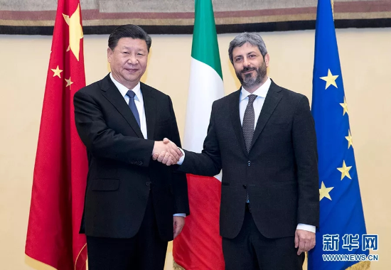 2019年3月22日,國家主席習近平在羅馬會見意大利眾議長菲科。 新華社記者 王曄/攝